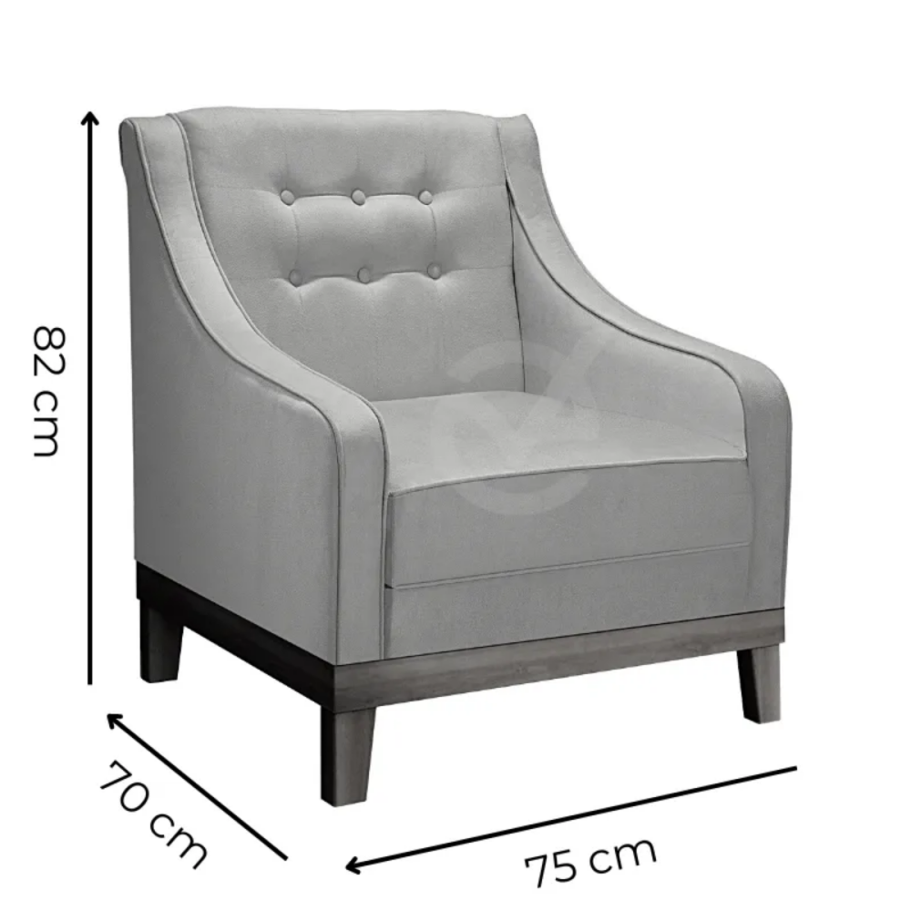 Encosto e Braços: Almofada fixa com capitonê, espuma D28 Soft de 7cm, percinta elástica italiana.