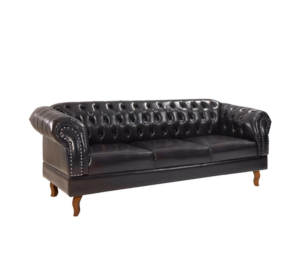 Namoradeira Chesterfield Duque Clássica 3 Lugares Courissimo Preto