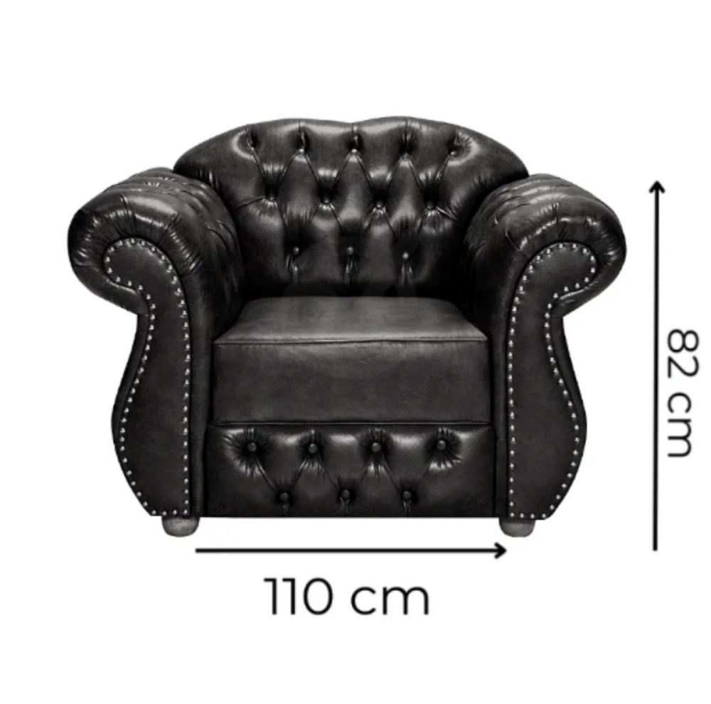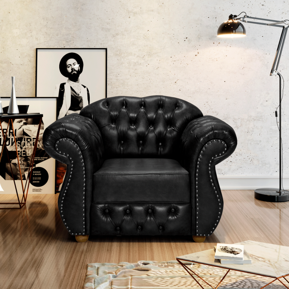 A Poltrona Chesterfield Merlô é uma peça atraente na decoração, a poltrona gera mais beleza e sofisticação na decoração de ambientes refinados, é excelente para favorecer o ambiente com uma decoração clássica, luxuosa, imponente e confortável. É produzida em courino preto, trazendo elegância a peça. Com a estrutura em madeira maciça eucalipto tratado proveniente de área de reflorestamento e estofada artesanalmente. Leve harmonia e graciosidade para o seu ambiente com a poltrona Chesterfild Merlô da Artezi.