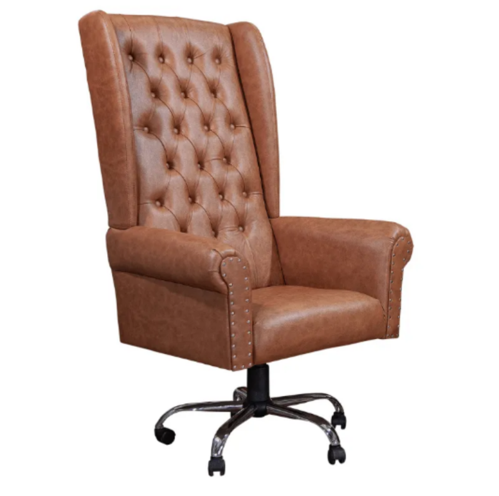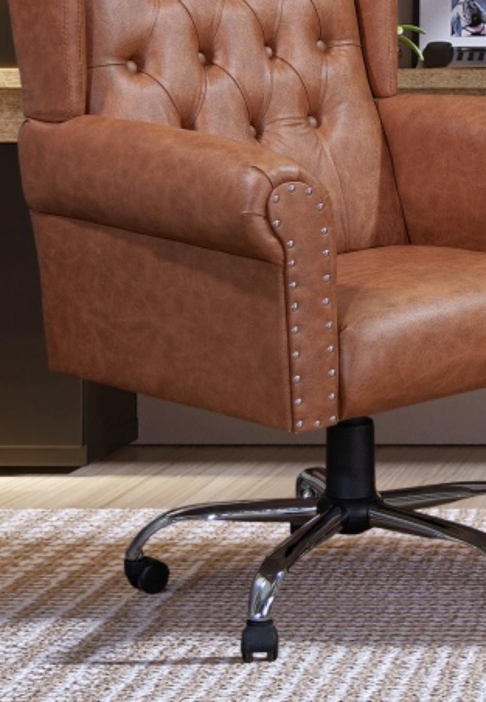 Cadeira de Escritório Giratória Presidente Chesterfield Couro Legítimo