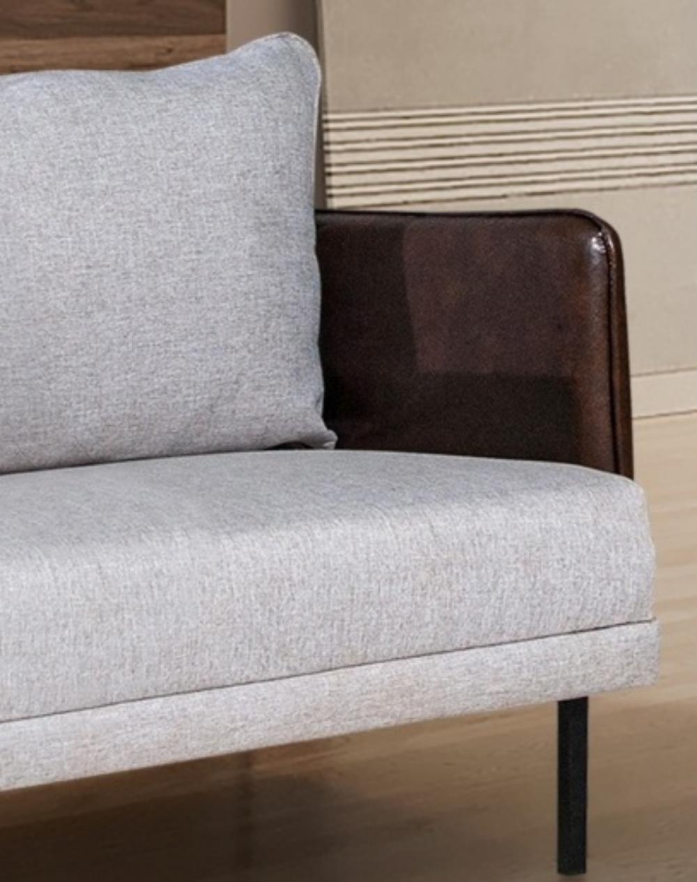 Encosto e Braços: Almofada fixa com capitonê, espuma D28 Soft de 7cm, percinta elástica italiana.